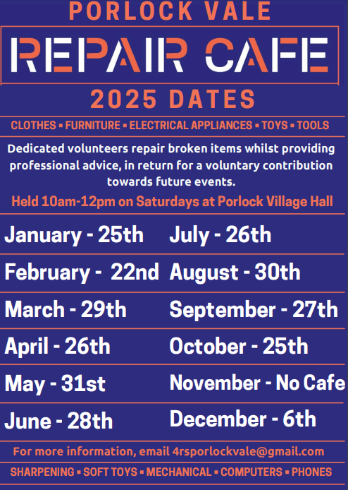Porlock Vale Repair Cafe 2025 Dates